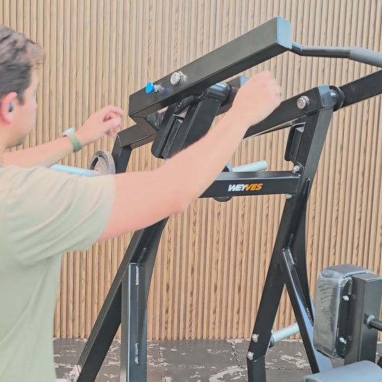 Diseñada para trabajar la espalda con una trayectoria más orgánica, la Pull Down Machine con movimiento radial permite una tracción descendente que acompaña el patrón natural del cuerpo, enfatizando la activación de los dorsales.