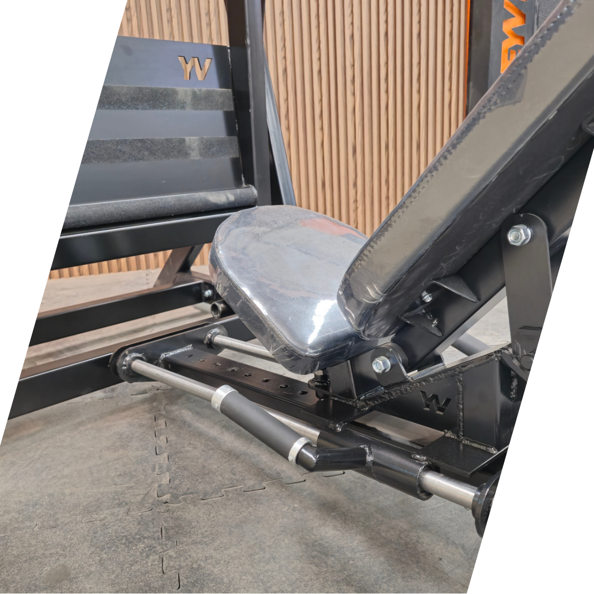 Diseño de bajo perfil para optimizar espacio sin sacrificar capacidad de carga. Barra y baleros calibrados para rotación estable; freno ampliado en modelos seleccionados para seguridad en descensos. Plataforma y soportes pensados para minimizar el deslizamiento lateral del pie y mantener alineación de rodilla-tobillo.